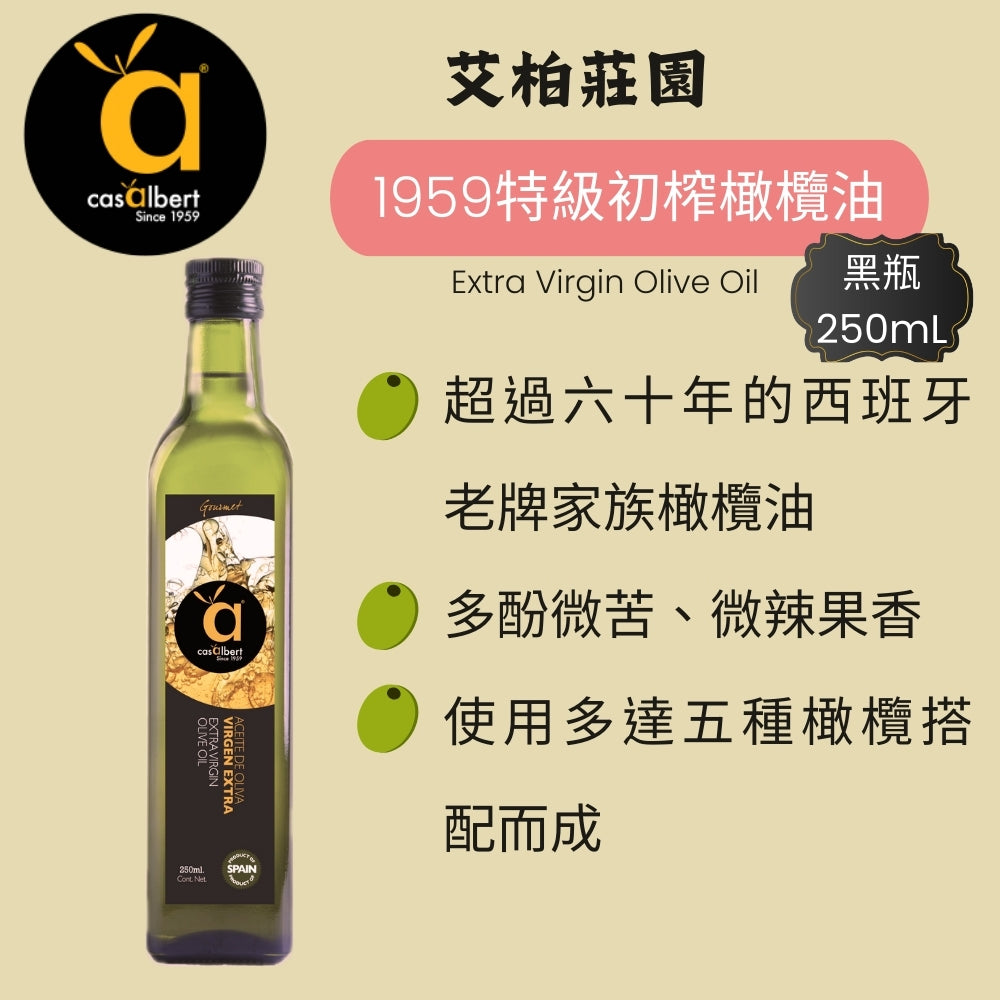 艾柏莊園引進了兩款特級初榨橄欖油,如果說「花神」是餐桌上優雅的點綴,那麼「1959」就是您廚房裡最值得信賴的夥伴。 艾柏莊園「1959」特級初榨橄欖油,專為日常使用設計,橄欖多酚的天然風味,讓您以更輕鬆的價格,享受來自西班牙頂級的健康與美味。