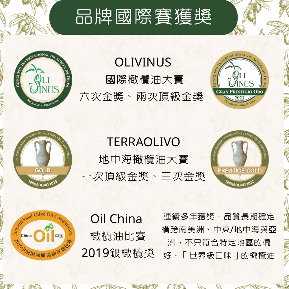 高 CP 值的健康選擇:以更親民的價格,提供特級初榨(Extra Virgin)等級的品質。富含橄欖多酚與單元不飽和脂肪酸,是家庭每日料理的健康基石。